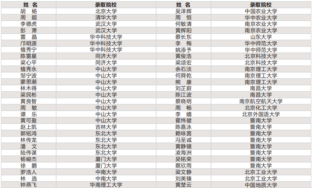 历年考入全国名牌大学学生光荣榜(部分)