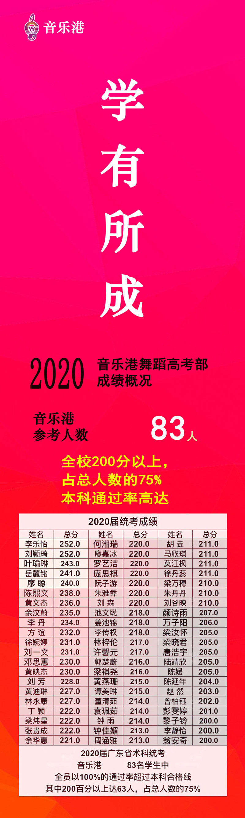 经过15年的教育沉淀,我们已成长为广东省乃至于全国范围内艺考培训的先锋,在浙江音乐学院、沈阳音乐学院、四川音乐学院、云南艺术学院等多地设立校区,更高质量的服务于广大考生,协助学员直升名校。目前音乐港艺术学校服务于广州、佛山、中山、珠海、东莞、衡阳、清远、茂名、云浮、梅州、阳江等多个城市艺考生,值得您的信赖!