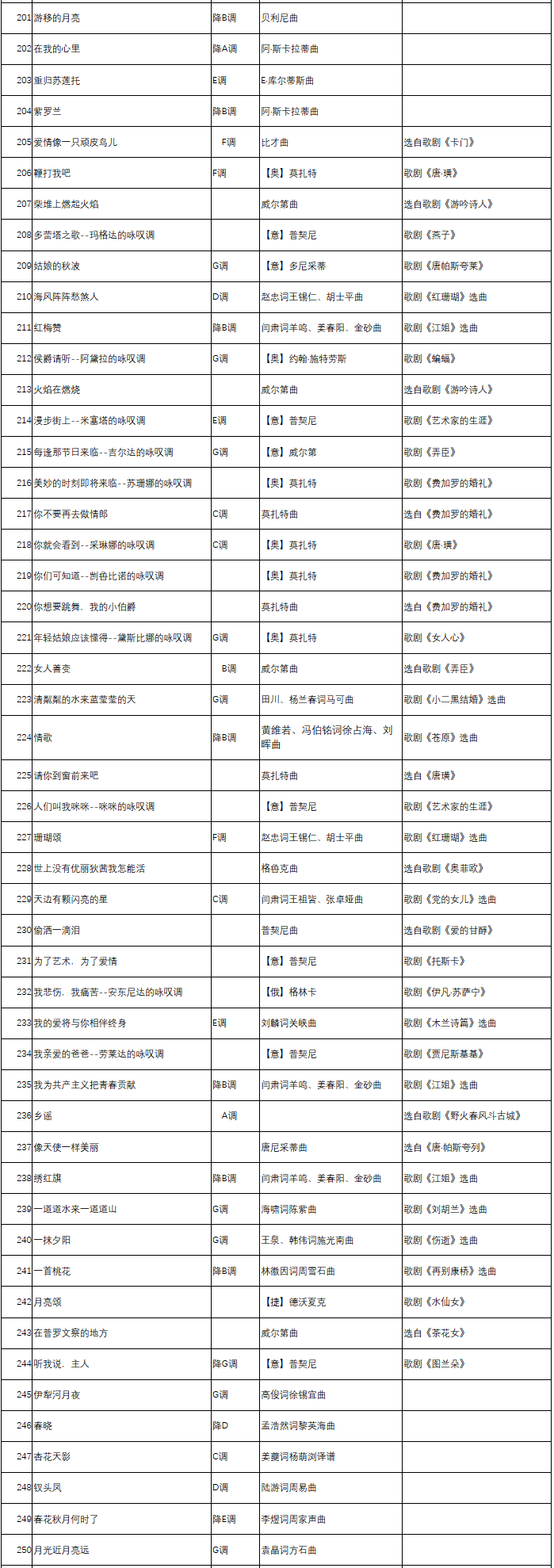 宁夏艺术统考音乐类声乐曲目