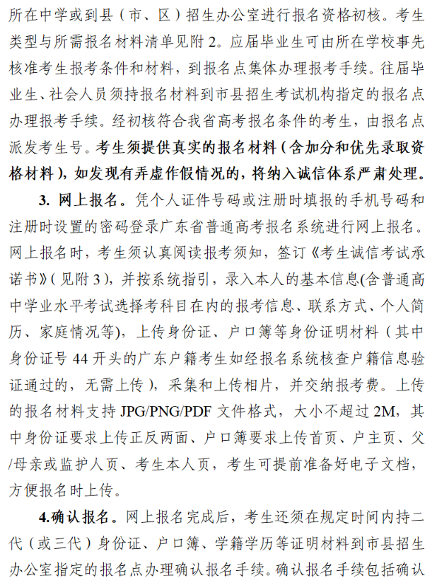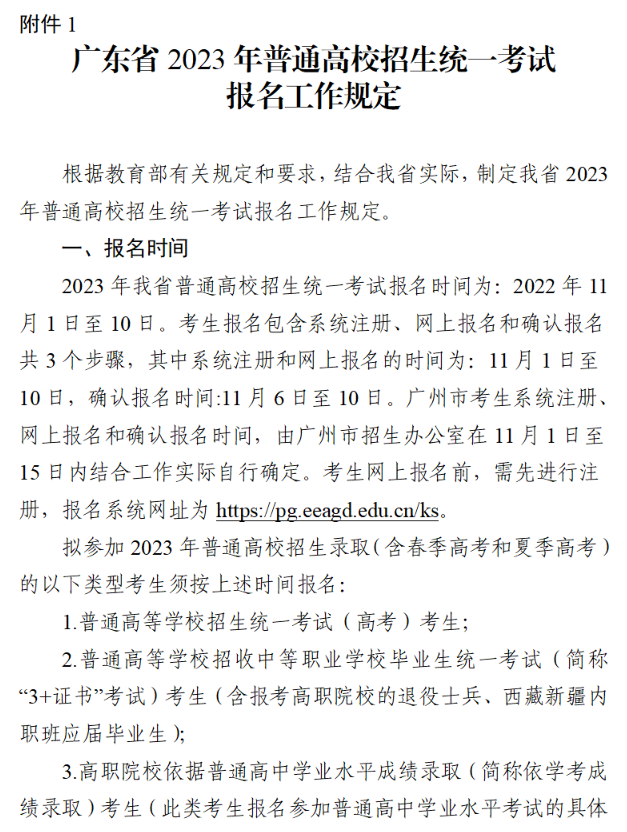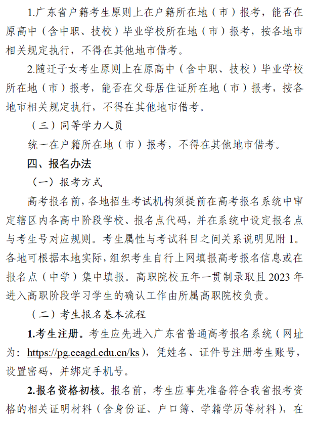 广东省2023年普通高校招生统一考试报名工作规定