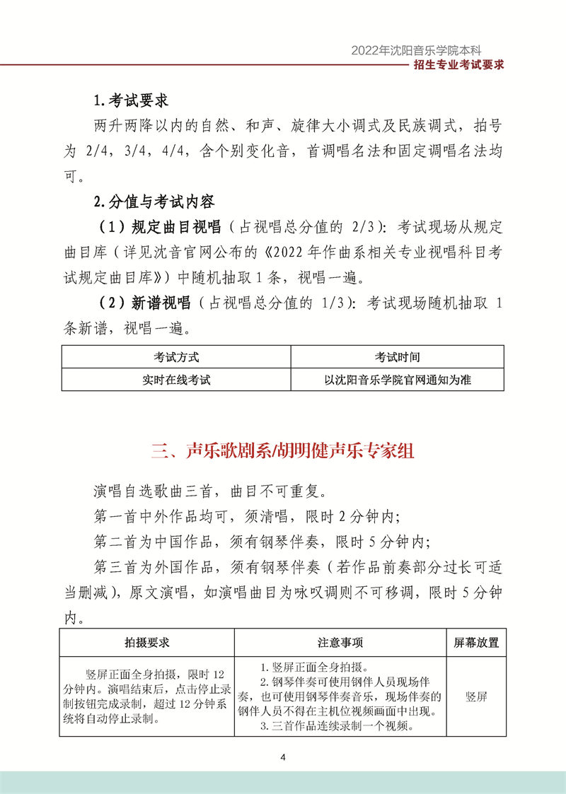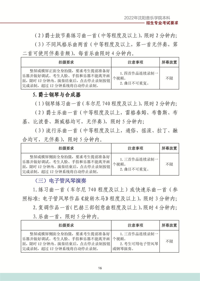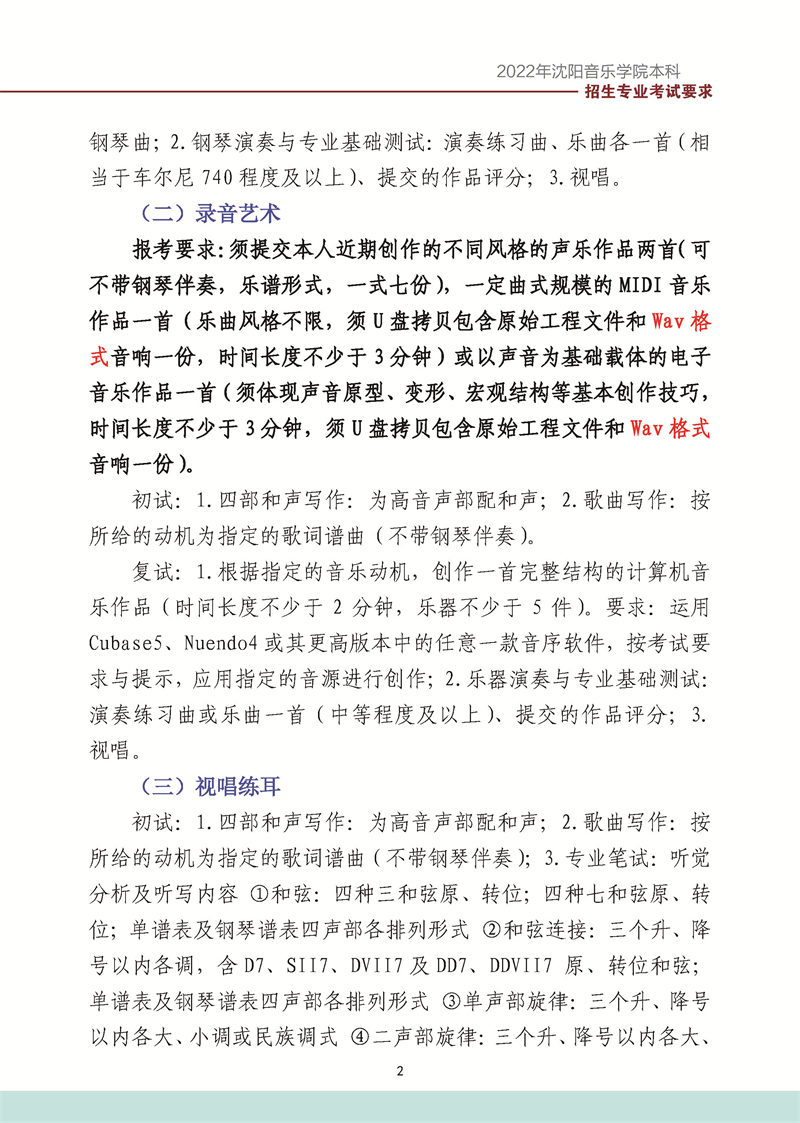 沈阳音乐学院2022年本科招生考试要求