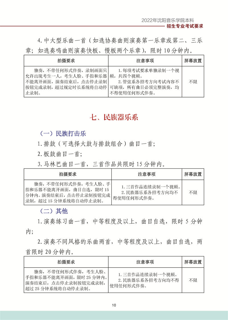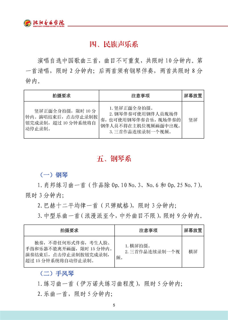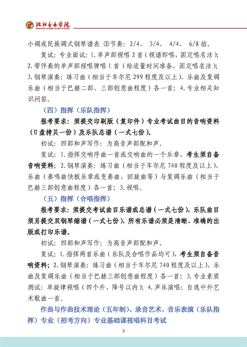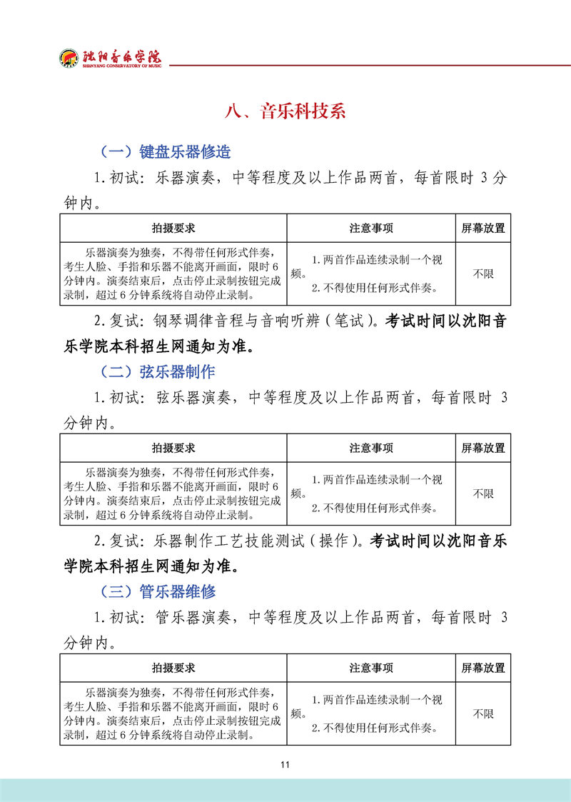 沈阳音乐学院2022年本科招生考试要求