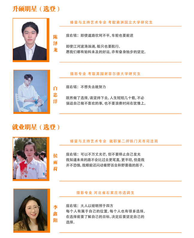 本专业核心课程:新媒体口语传播、全媒体新闻采访与写作、配音艺术、出镜记者与现场报道、电竞解说、全媒体新闻采写、栏目策划、综艺节目研究等。