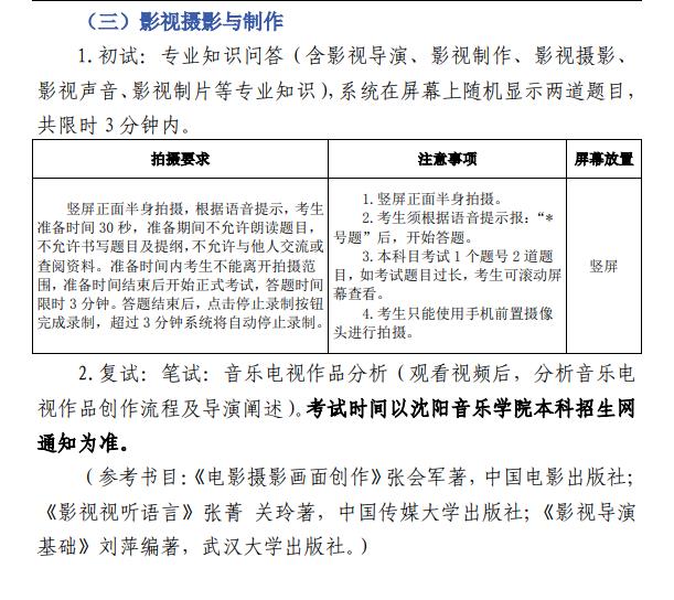 沈阳音乐学院2022年影视摄影与制作考试内容