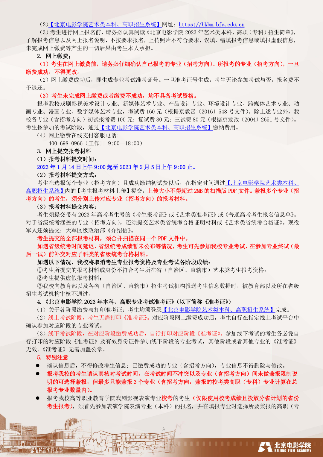 北京电影学院 2023 年艺术类本科、高职(专科)招生简章