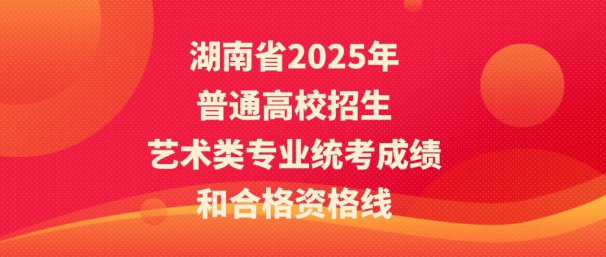 湖南省2025年普通高校招生艺术类专业统一考试工作自2024年11月30日开始,至2024年12月27日结束。全省约3.4万名考生参加了音乐类、舞蹈类、表(导)演类、播音与主持类、美术与设计类、书法类、服装类等科类的全省统考。1月11日,湖南省教育考试院公布2025年普通高校招生艺术类专业各科类统考合格资格线(各类别均为155分),并同步公布考生成绩。