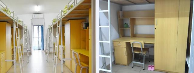 高中部宿舍为8人间宿舍。宿舍内配备架子床、书桌、衣柜、储物柜等家具,每间宿舍2个洗手间(含浴室)、2个洗手盆、1个阳台,每层有热饮用水器。同时提供洗衣服务。