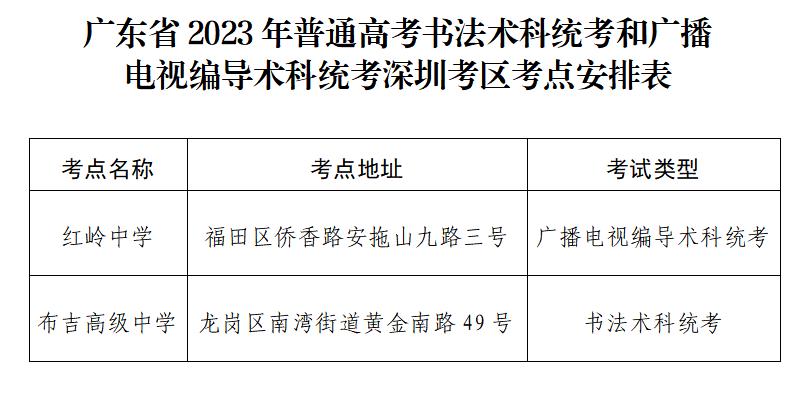 附件:广东省2023年普通高考书法术科统考和广播电视编导术科统考深圳考区考点安排表