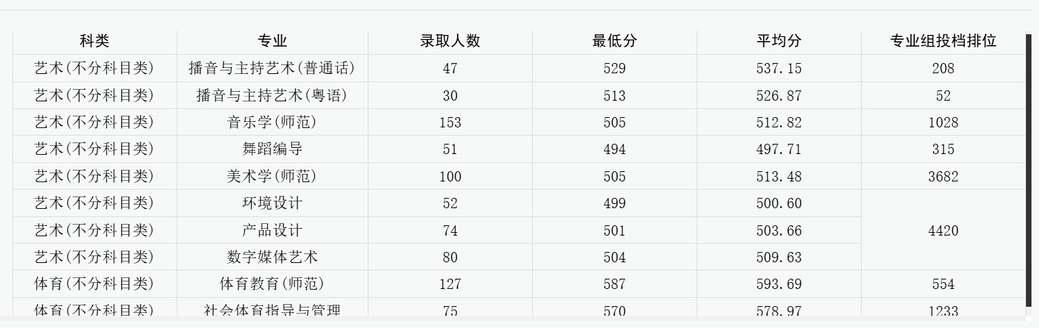 2024广东艺体类录取分数线统计