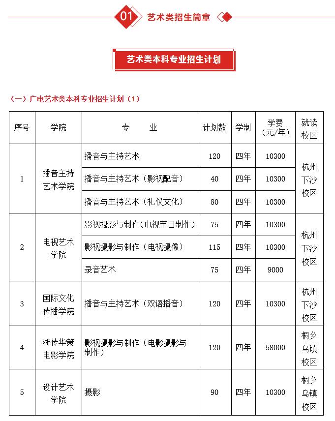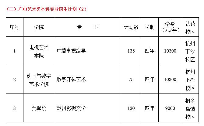 【注】:以上广电艺术类本科专业(方向)面向全国招生,考生可按各省考试院(招生办)规定参加我校组织的考试。初试为线上考试,初试合格者参加复试,复试为线下现场考试,复试只设杭州考点。