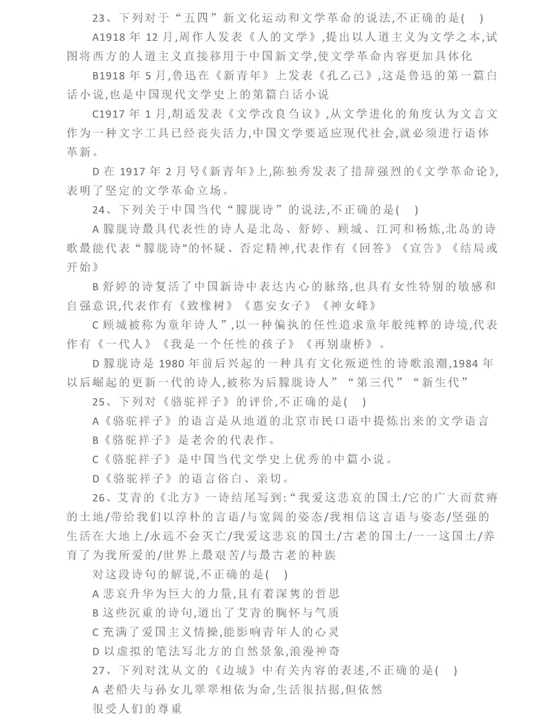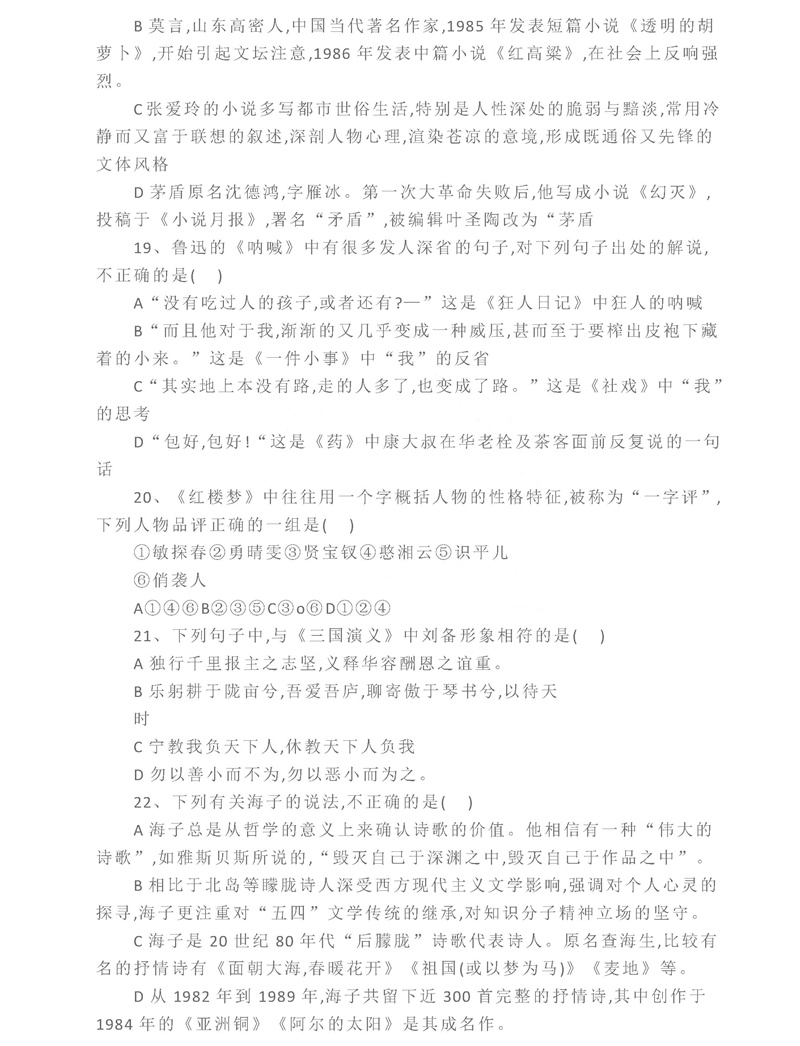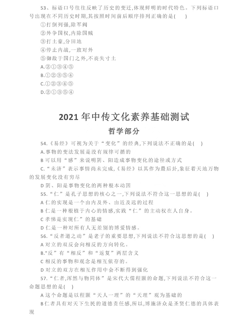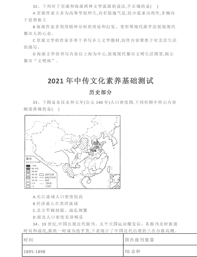 中国传媒大学2021年文史哲真题