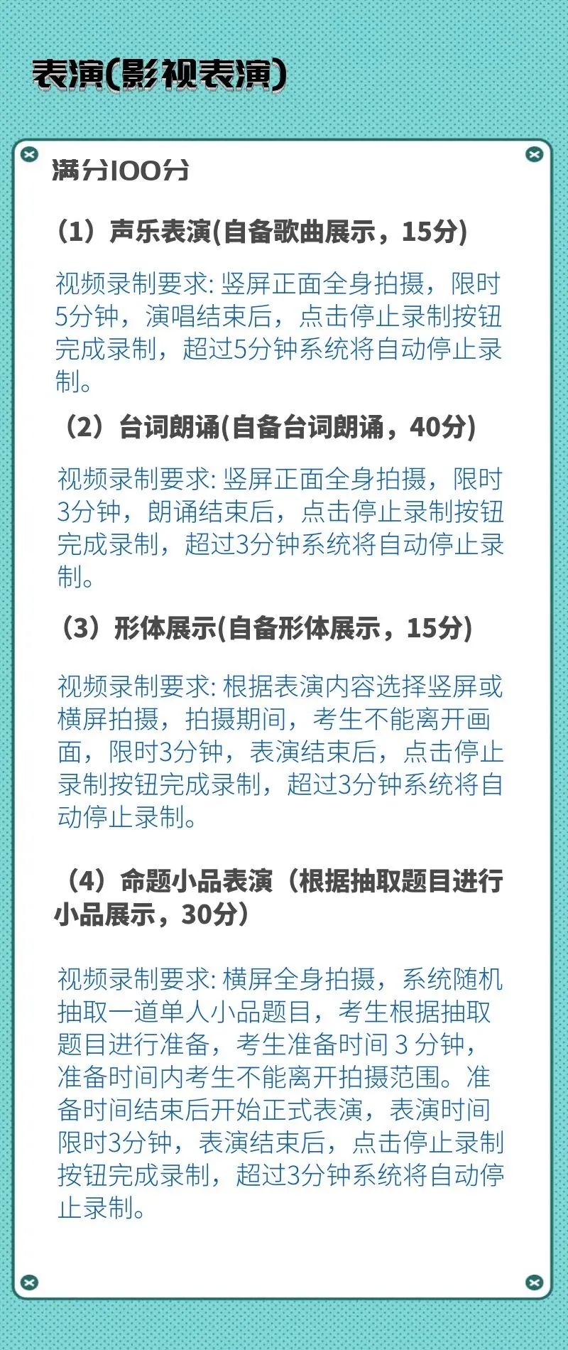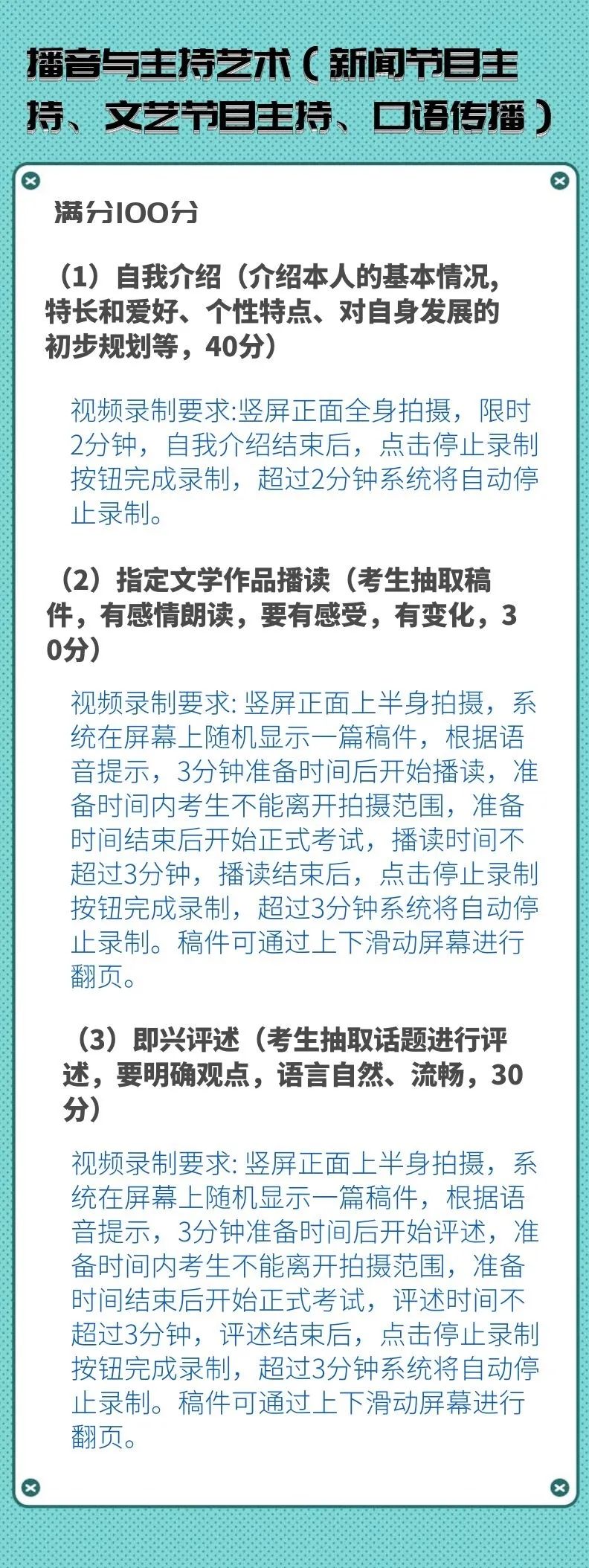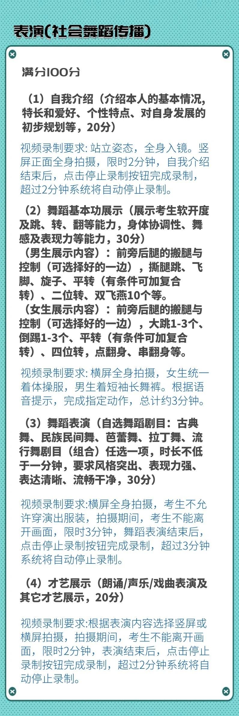 校考专业考试科目及录制要求