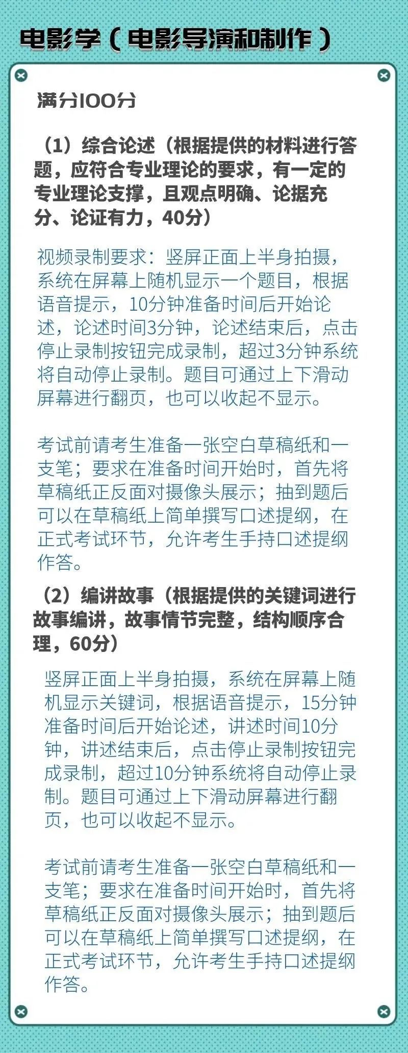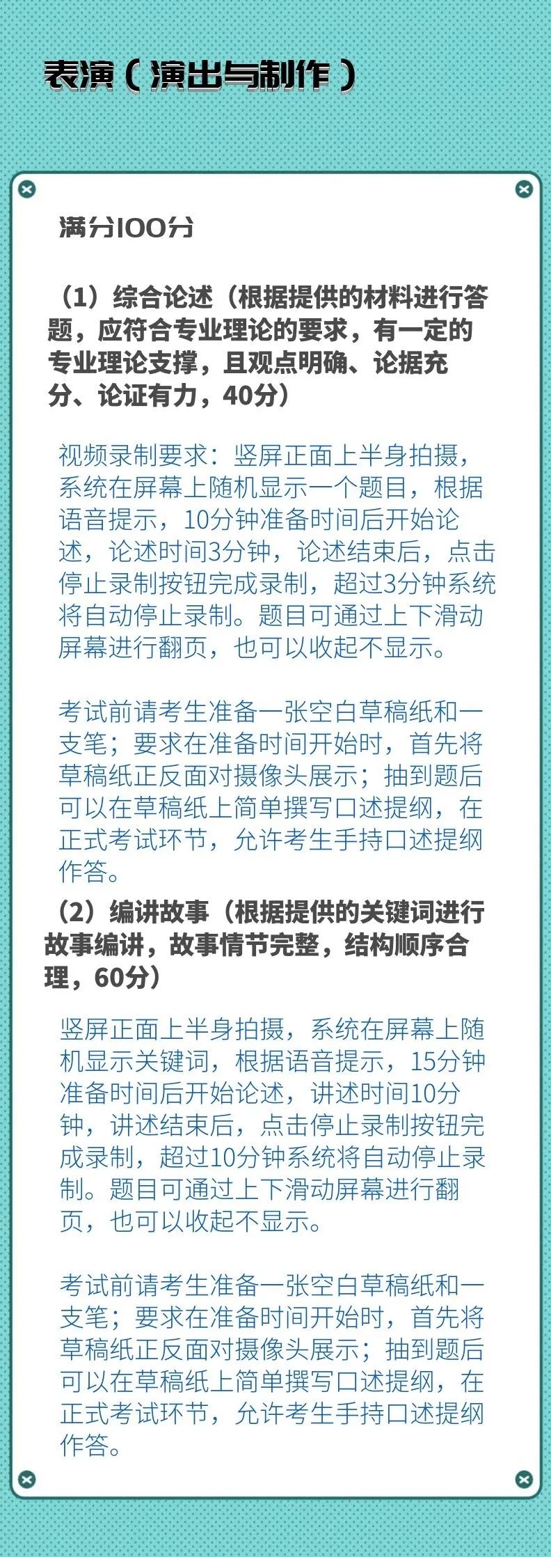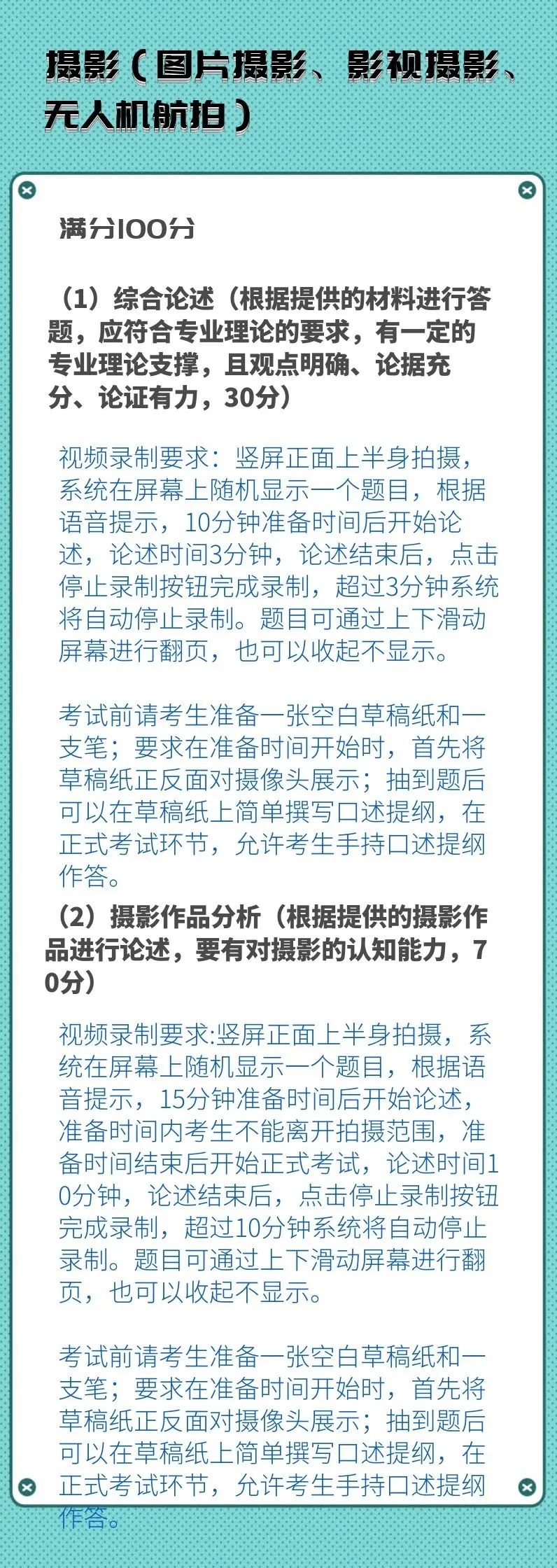 校考专业考试科目及录制要求