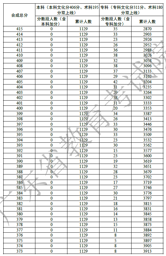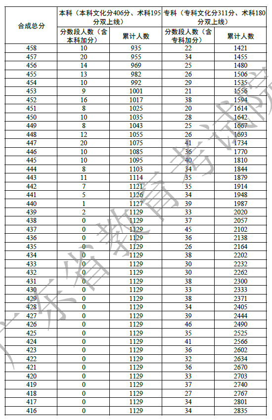 广东省2022年编导一分一段表