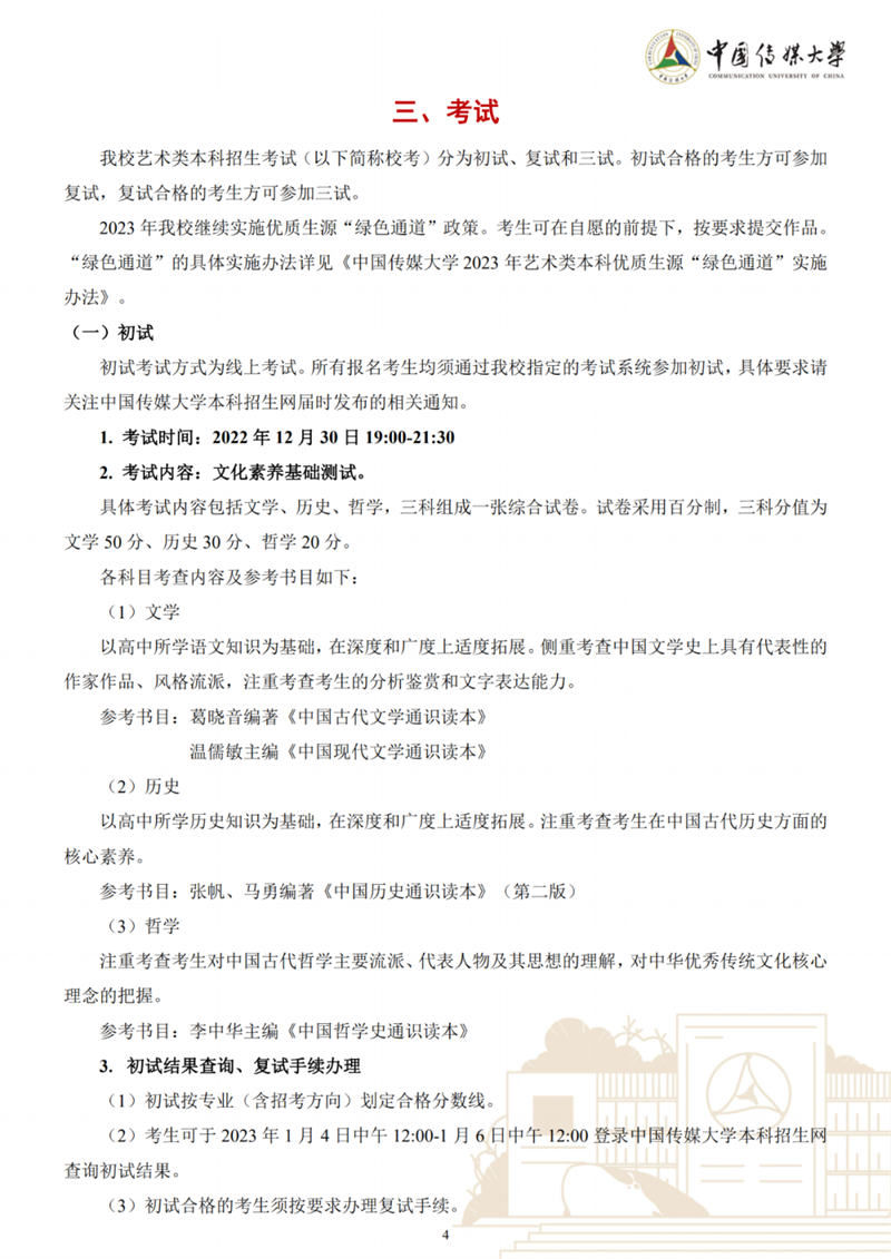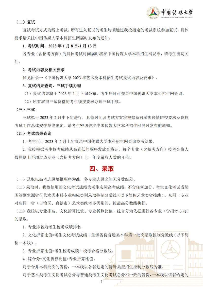 2023年,学校将继续按照“独立设置本科艺术院校艺术类本科专业招生办法”面向全国进行艺术类本科招生。本简章只限于介绍我校艺术类本科专业(含招考方向)的招生录取办法,其他类别另做介绍。