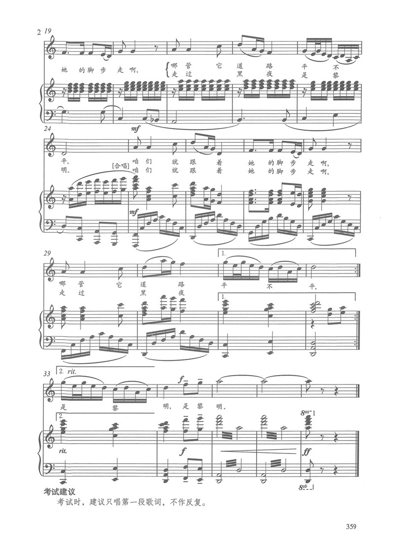 音乐统考声乐曲目
