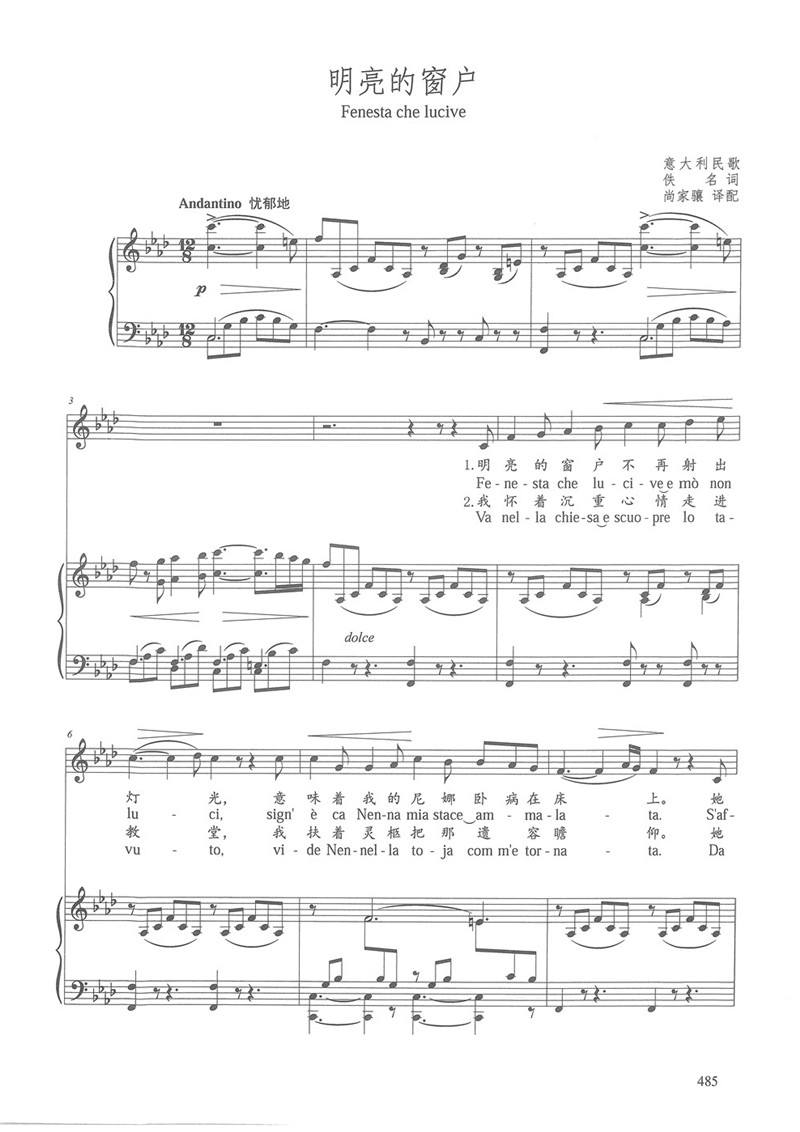 广东省音乐统考声乐曲目128 明亮的窗户