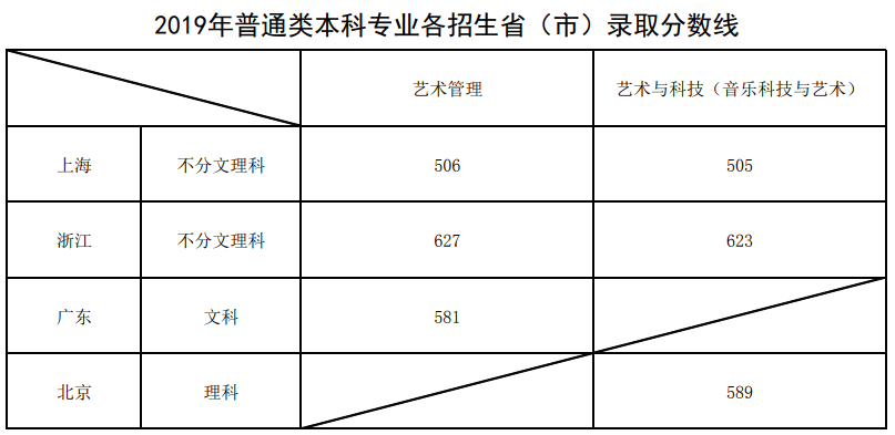 上海音乐学院2019年本科专业各招生省(市)录取分数线