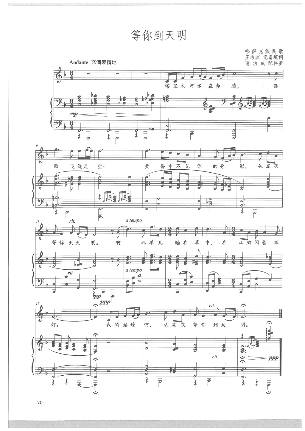 广东省音乐统考声乐曲目 022 等你到天明