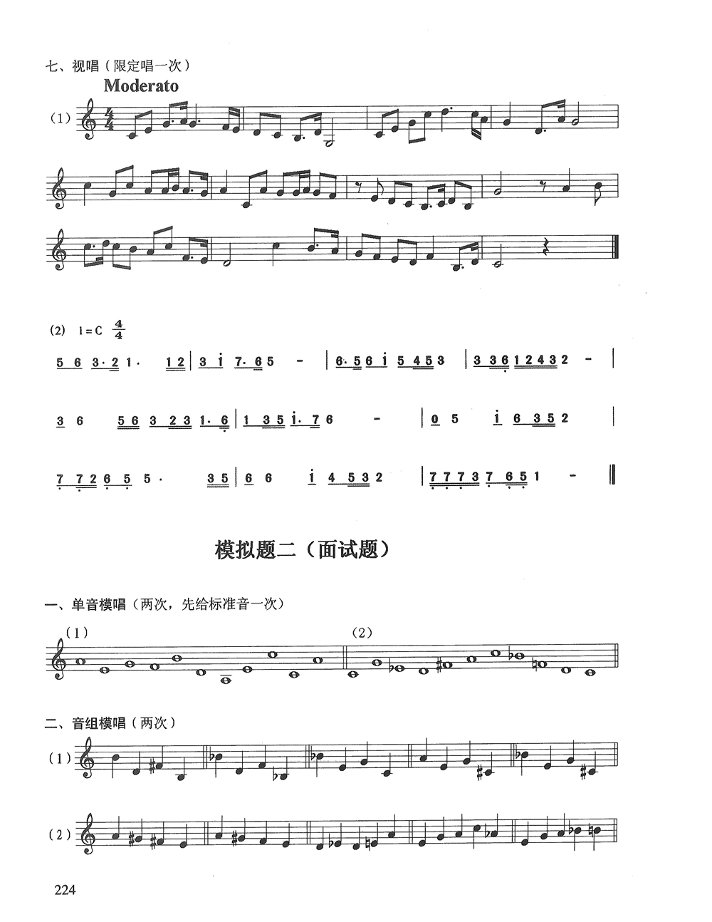 广东省音乐统考视唱模拟试题(面试题)一