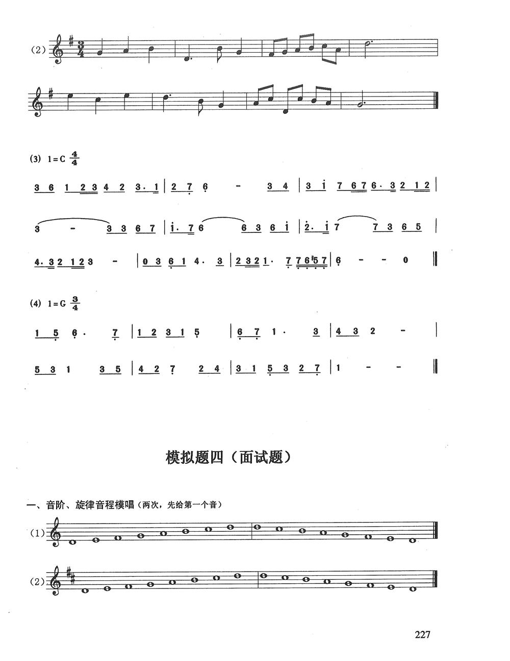 广东省音乐统考视唱模拟试题(听写,面试题)二