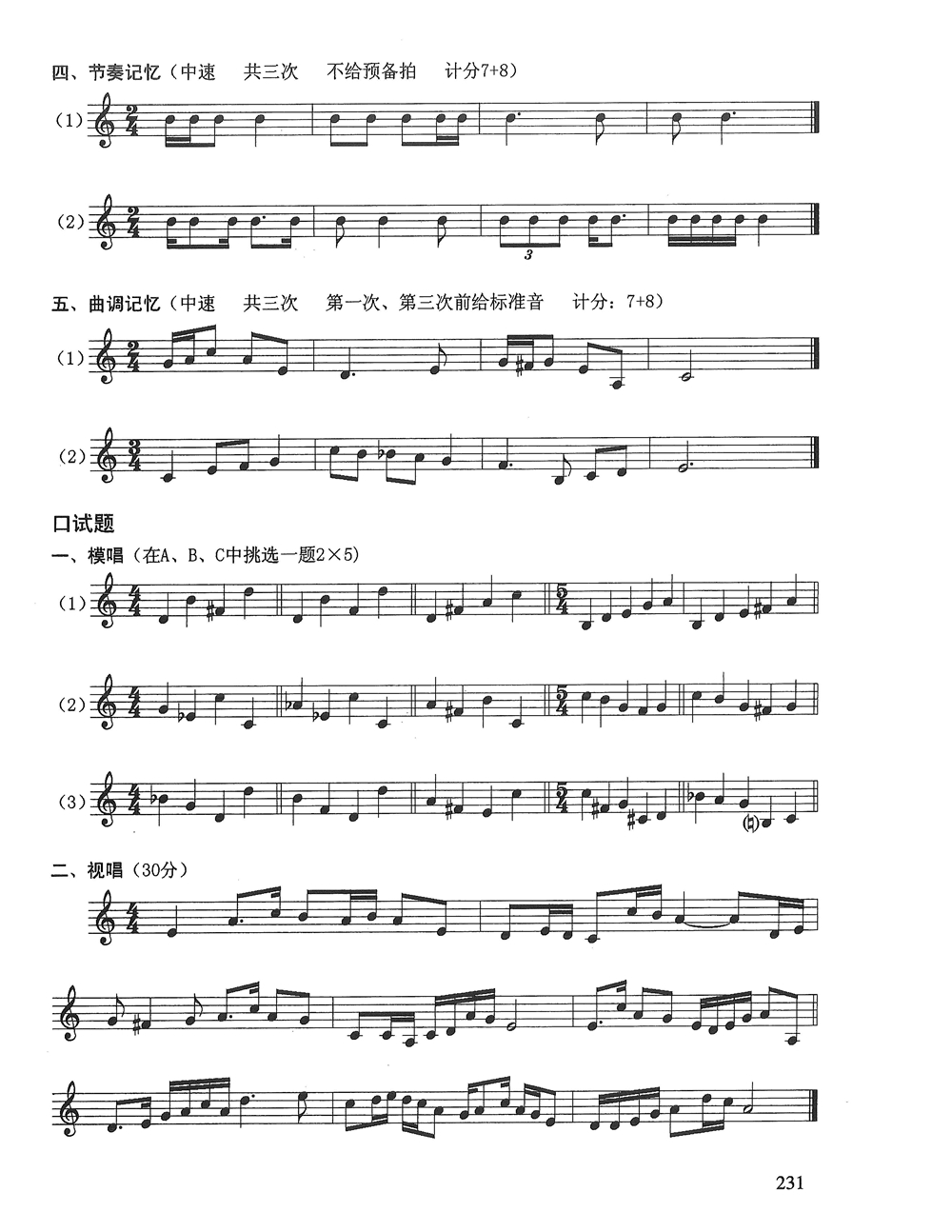 广东省音乐统考视唱模拟试题五(听写,面试题)一