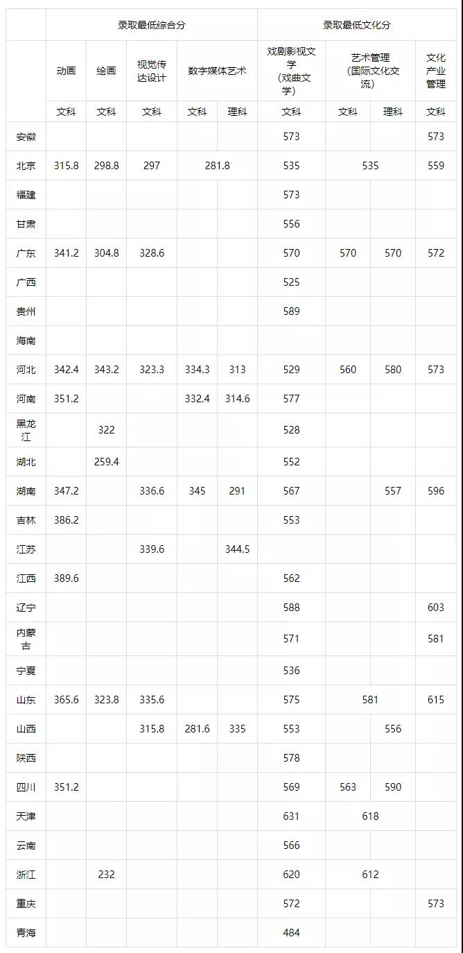 中国戏曲学院2020年艺术类本科录取分数线