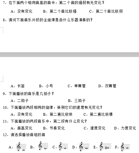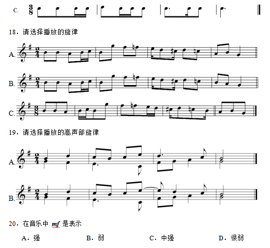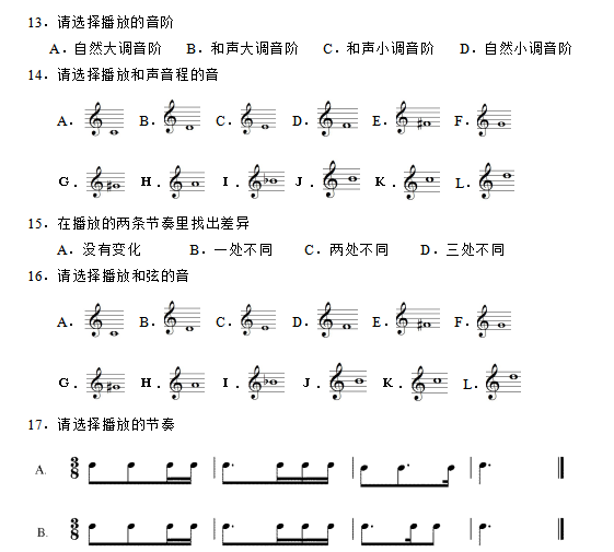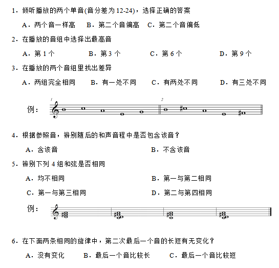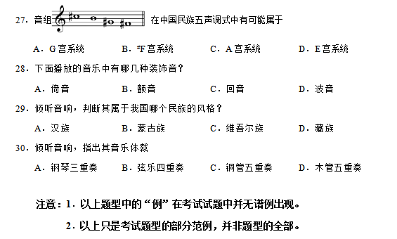 广东省音乐联考练耳与乐理机考题型示例