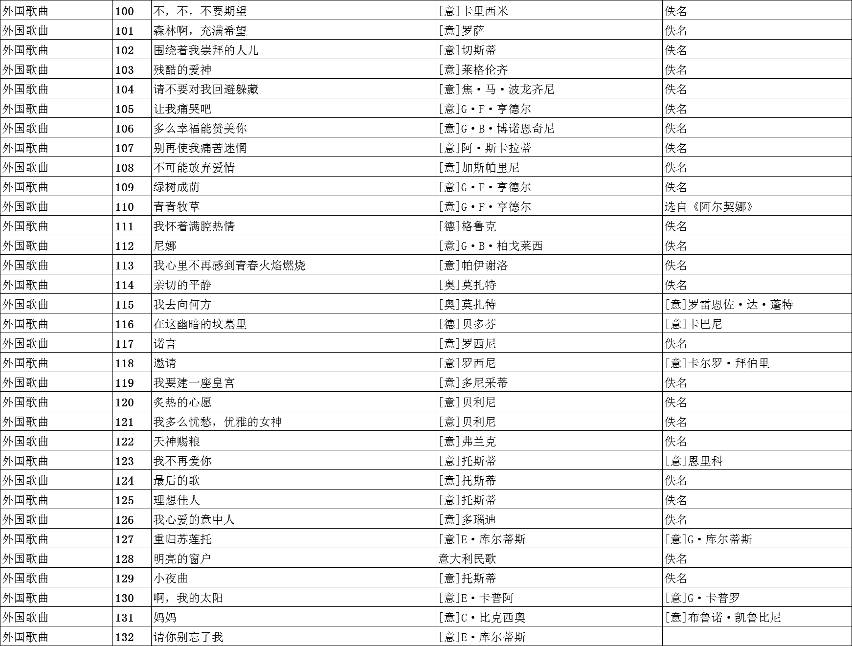 广东省音乐联考声乐外国歌曲规定曲目