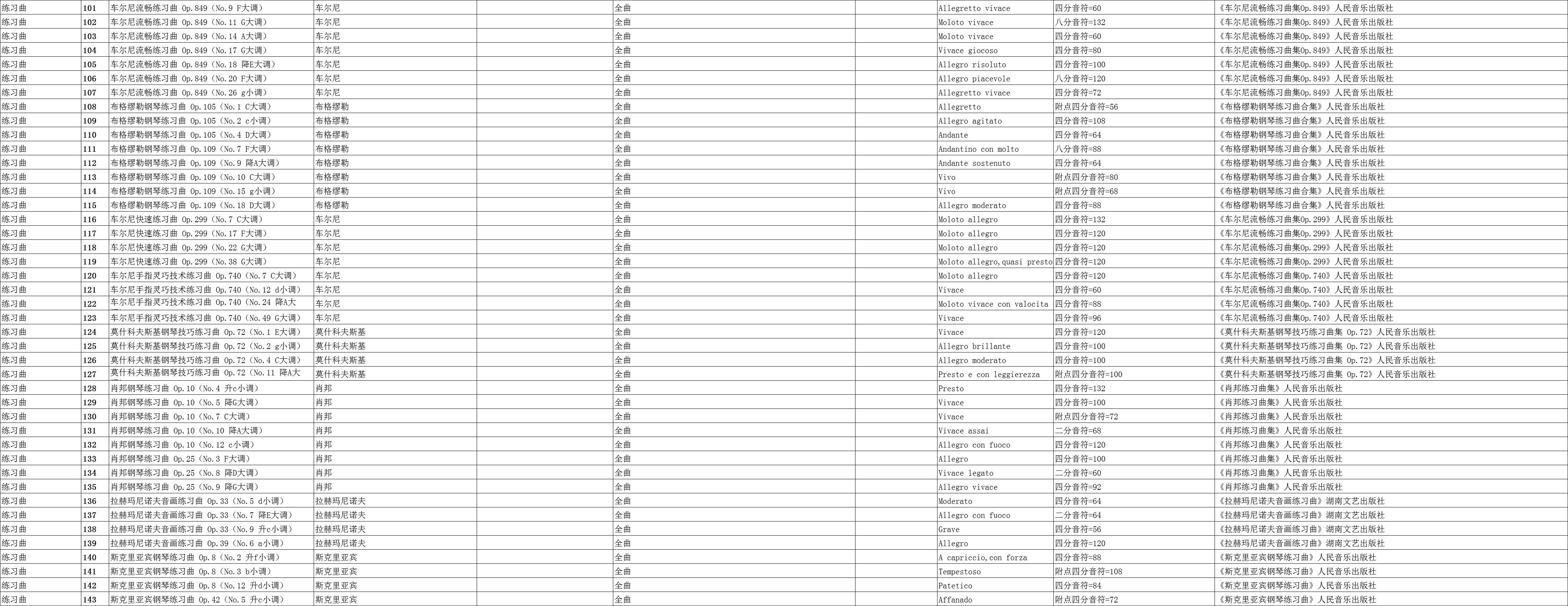 钢琴 练习曲 119 车尔尼快速练习曲 Op.299(No.38 G大调) 车尔尼 全曲 Moloto allegro,quasi presto 四分音符=120 《车尔尼流畅练习曲集Op.299》人民音乐出版社