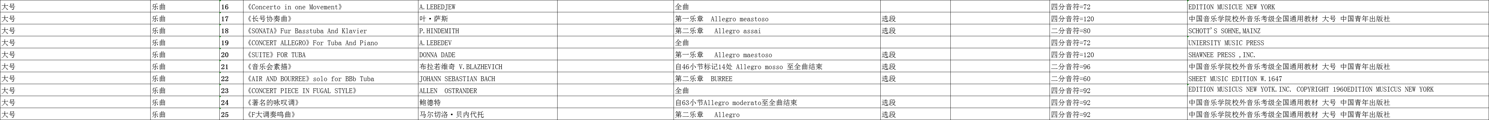 广东省音乐联考大号乐曲规定曲目