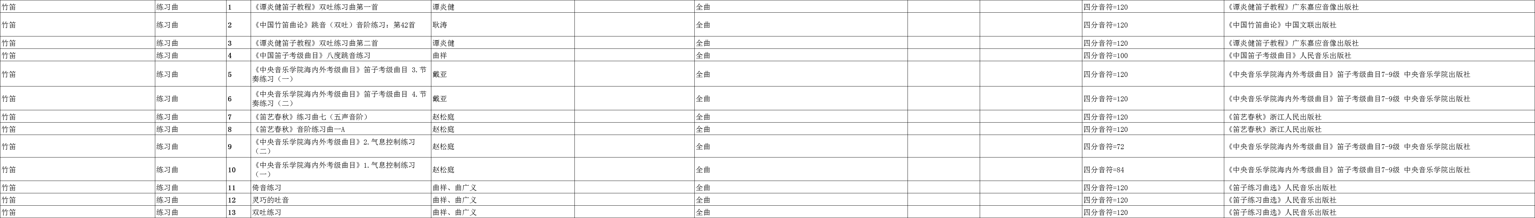广东省音乐联考竹笛练习曲规定曲目