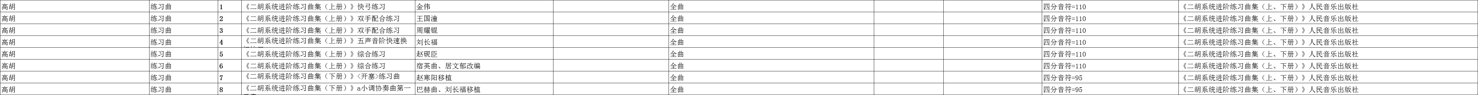 广东省音乐联考高胡练习曲规定曲目