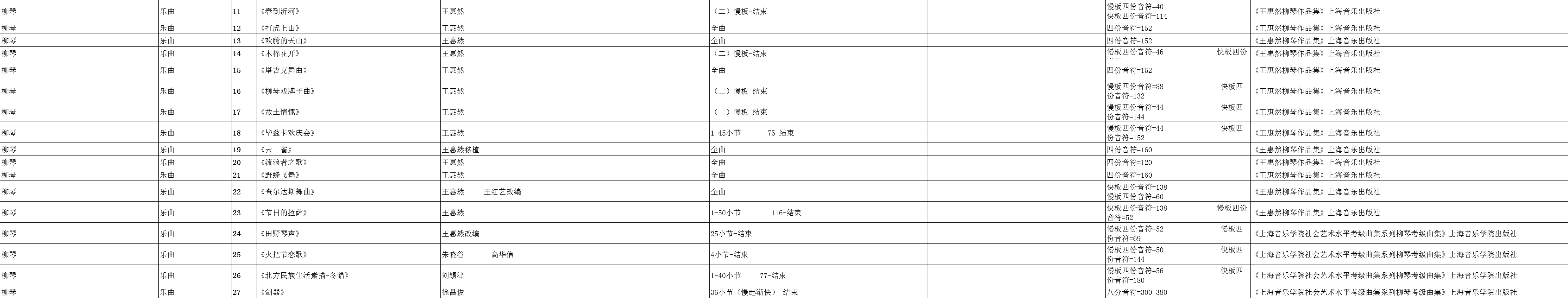 广东省音乐联考柳琴练习曲规定曲目