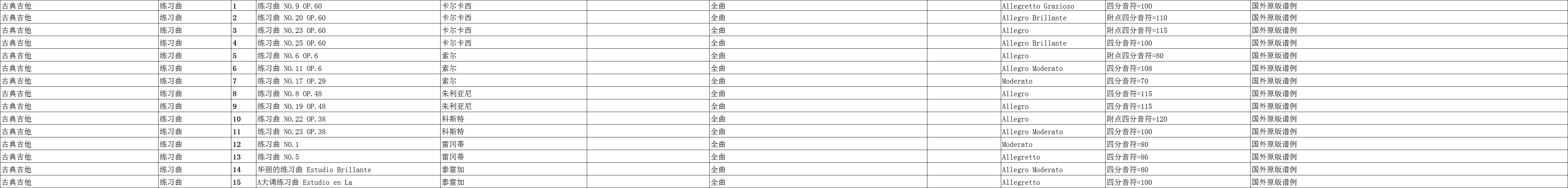 广东省音乐联考古典吉他练习曲规定曲目
